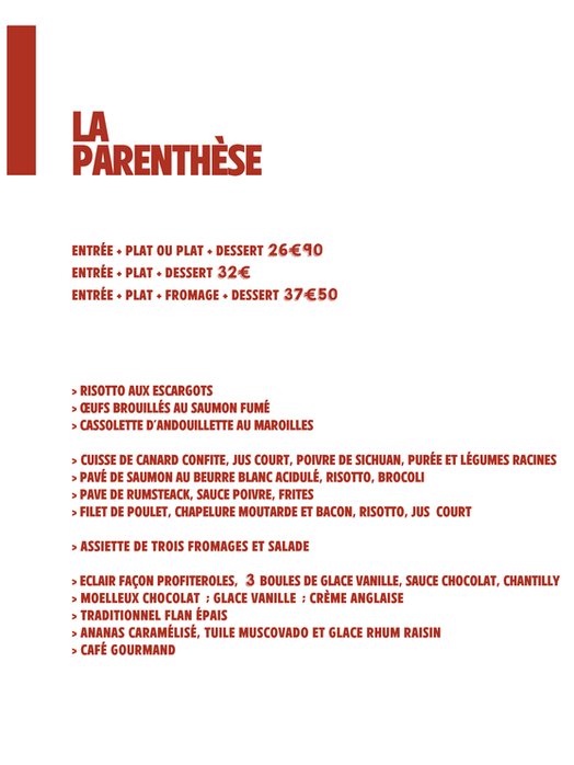 Entre amis, en famille, entre collègues ou pour vos déjeuners d'entreprises, soirées d'anniversaires, repas de groupes (sur réservation), venez vous détendre et laisser notre chef vous surprendre au restaurant La Parenthèse !